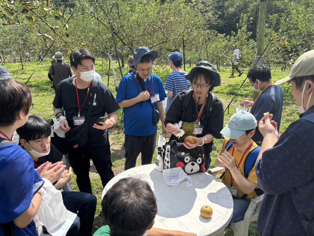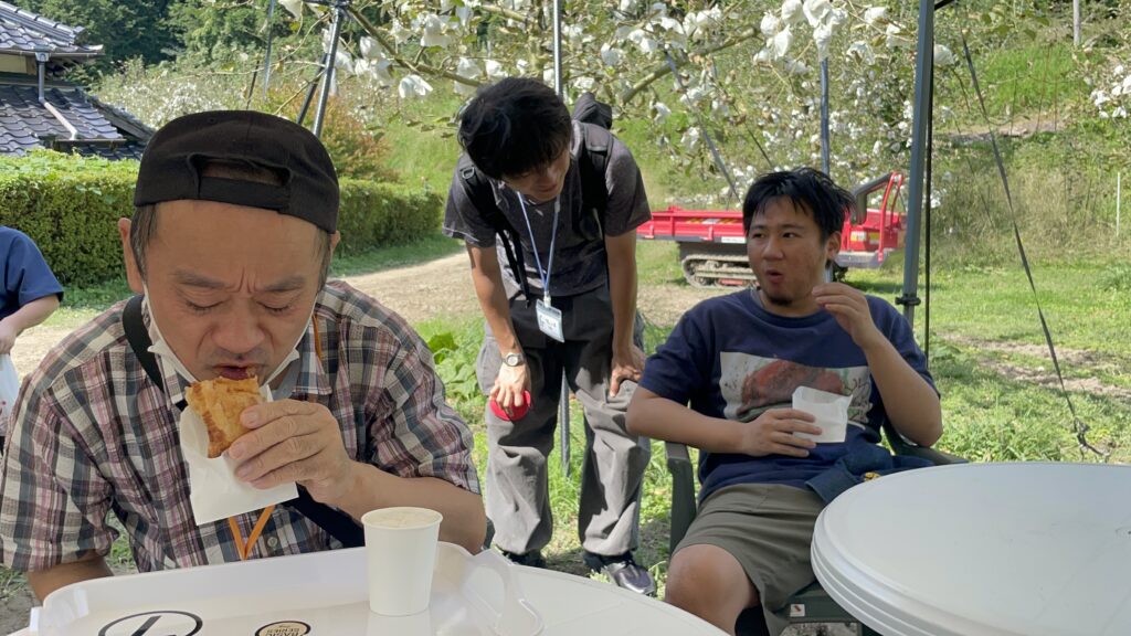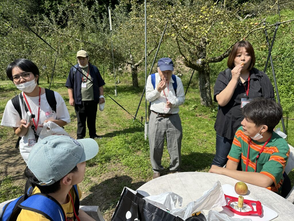 各班でりんご狩りをした後は、アップルパイや生絞りリンゴジュースを堪能して、皆さんそれぞれ表情良く過ごされていました😊